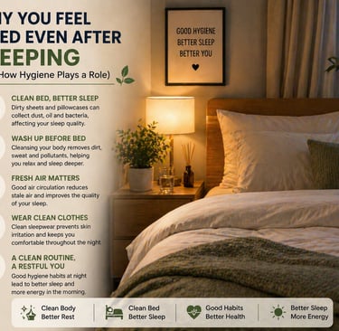 Your body needs a clean and comfortable environment to rest properly. Poor hygiene—like unclean bedding, stale air, or not washing before bed—can disrupt your sleep without you realizing it.